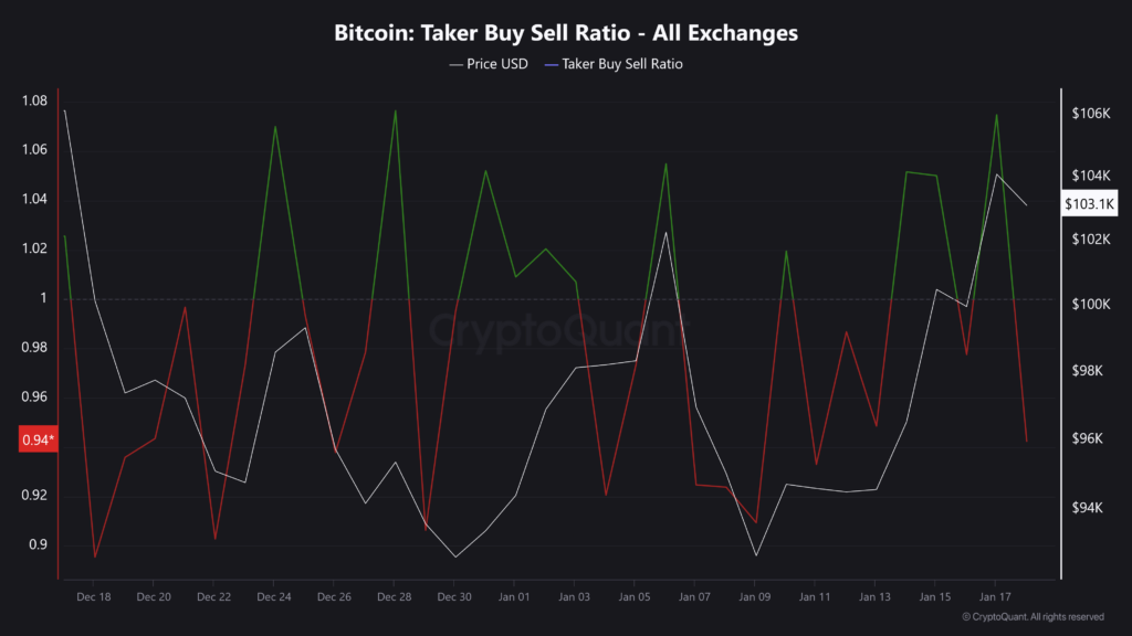Stosunek sprzedających do kupujących odwrócił się ku przewadze sprzedających podczas mini odreagowania od 106k, jednak zaczynamy być na niskich poziomach, co może wskazywać na to, że do poniedziałku ponownie pojawią się kupujący, a wzrosty będą kontynuowane (może to potwierdzać teorię, że cena znajduje się powyżej poziomu 0.702, który często bywa ostatecznym oporem w korektach w trendzie spadkowym).